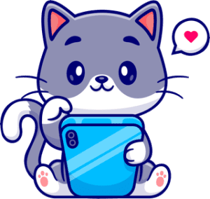 Karakter kucing memegang smartphone bikin gemes visitor kan.